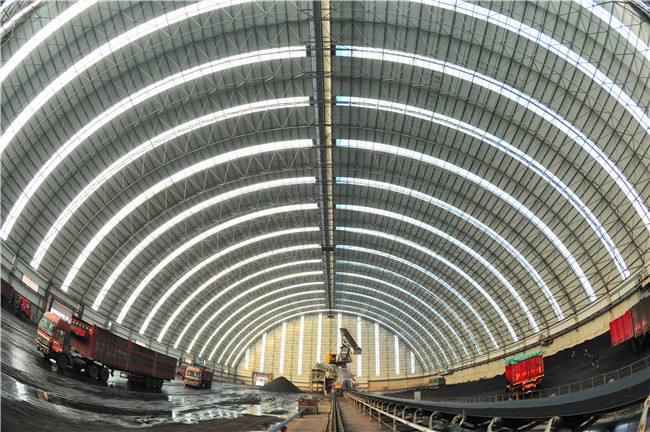堆场料场封闭式主体结构为新型的钢河东网架结构,维修结构为河东钢结构河东不锈钢板和纤维增强塑料灯具,其外形以河东网架式和平板为主,连接柱河东施工自由,设置喷雾自动喷水系统,从而可以实现棚内所有物料的覆盖,减少物料在运输过程中的损耗,起到防尘的作用,减少工厂关闭后的二氧化硫排放量,50mg/m3颗粒排放量小于10mg/m3,非常适合低能耗。低闭库自动感应反应对库存轮胎进行清洁,确保轮胎不受道路污染;封闭的储存区可从源头控制粉尘污染,控制无序排放。
